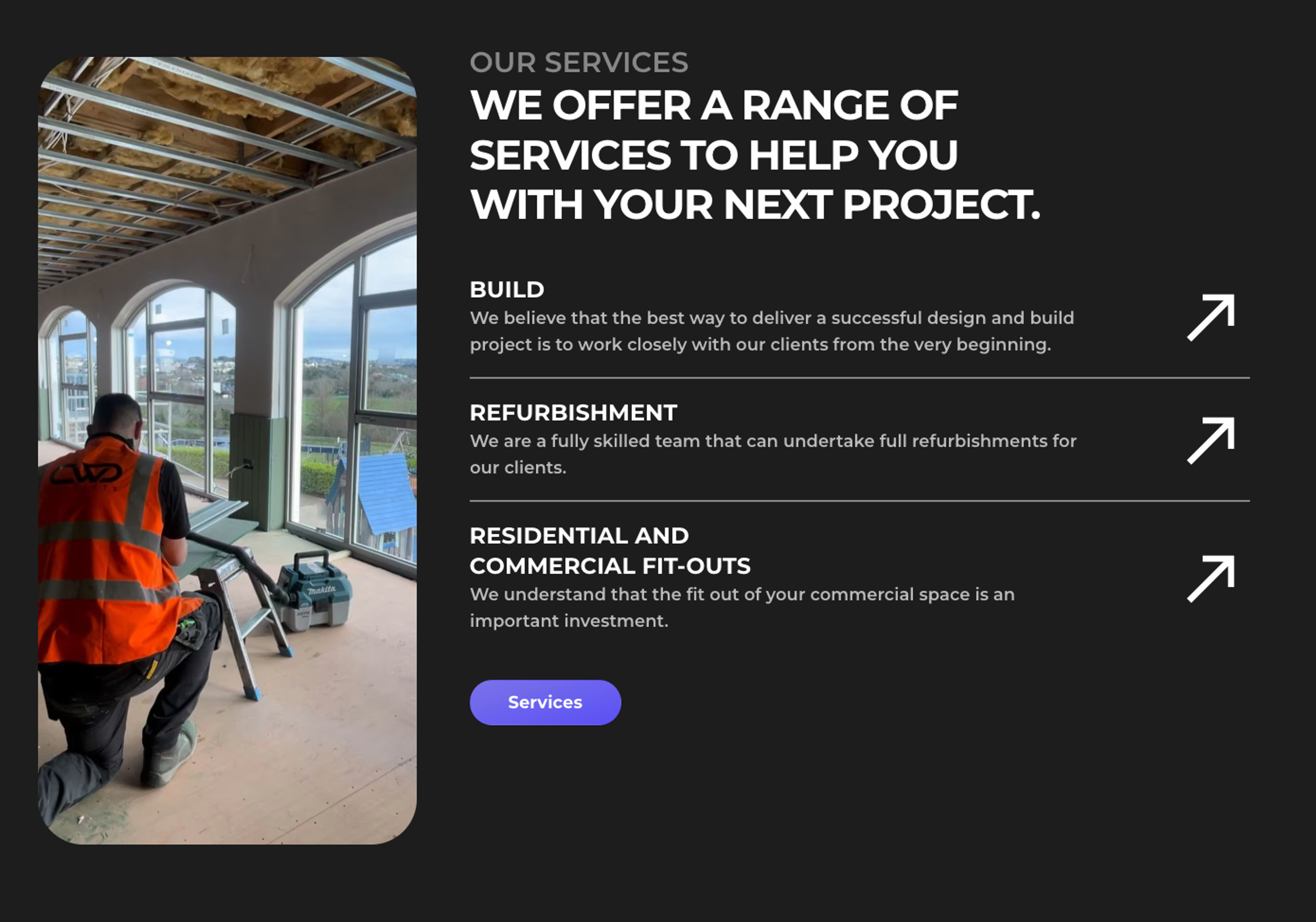 We are a construction company based in the South West of England. We specialise in all aspects of construction, from new builds to renovations.